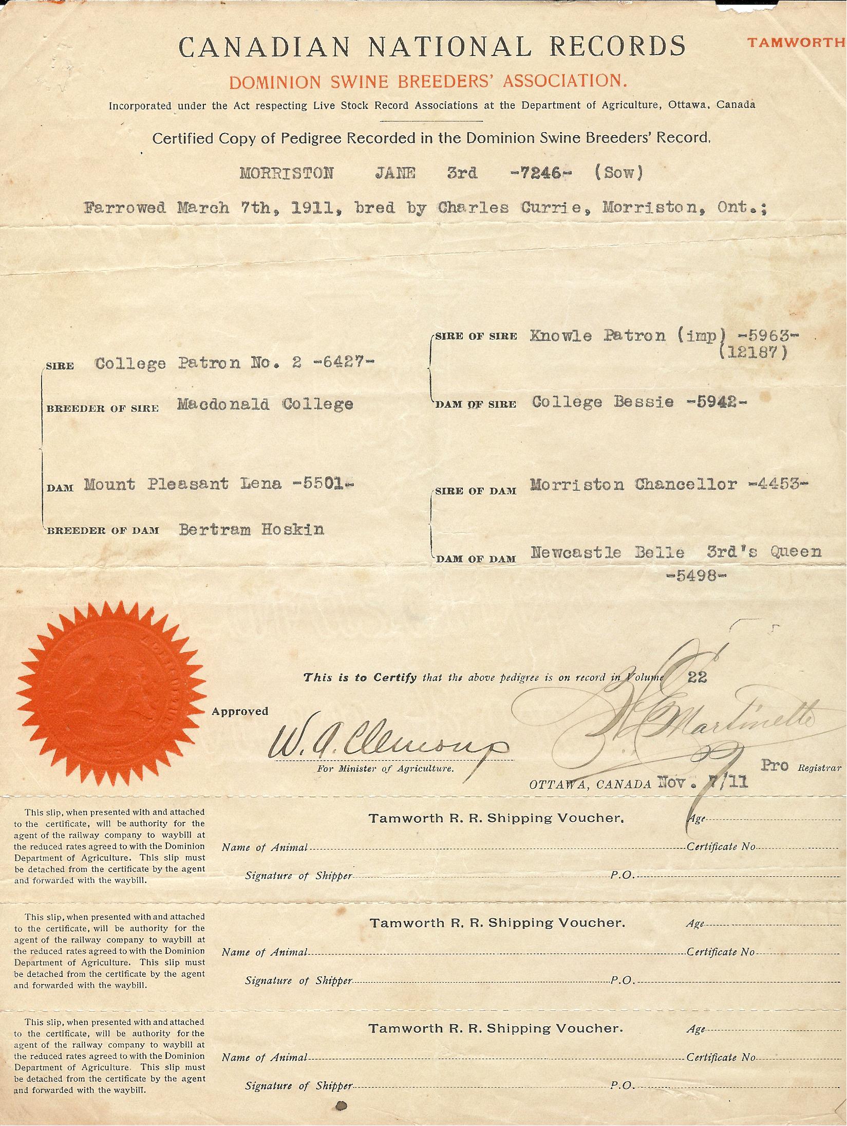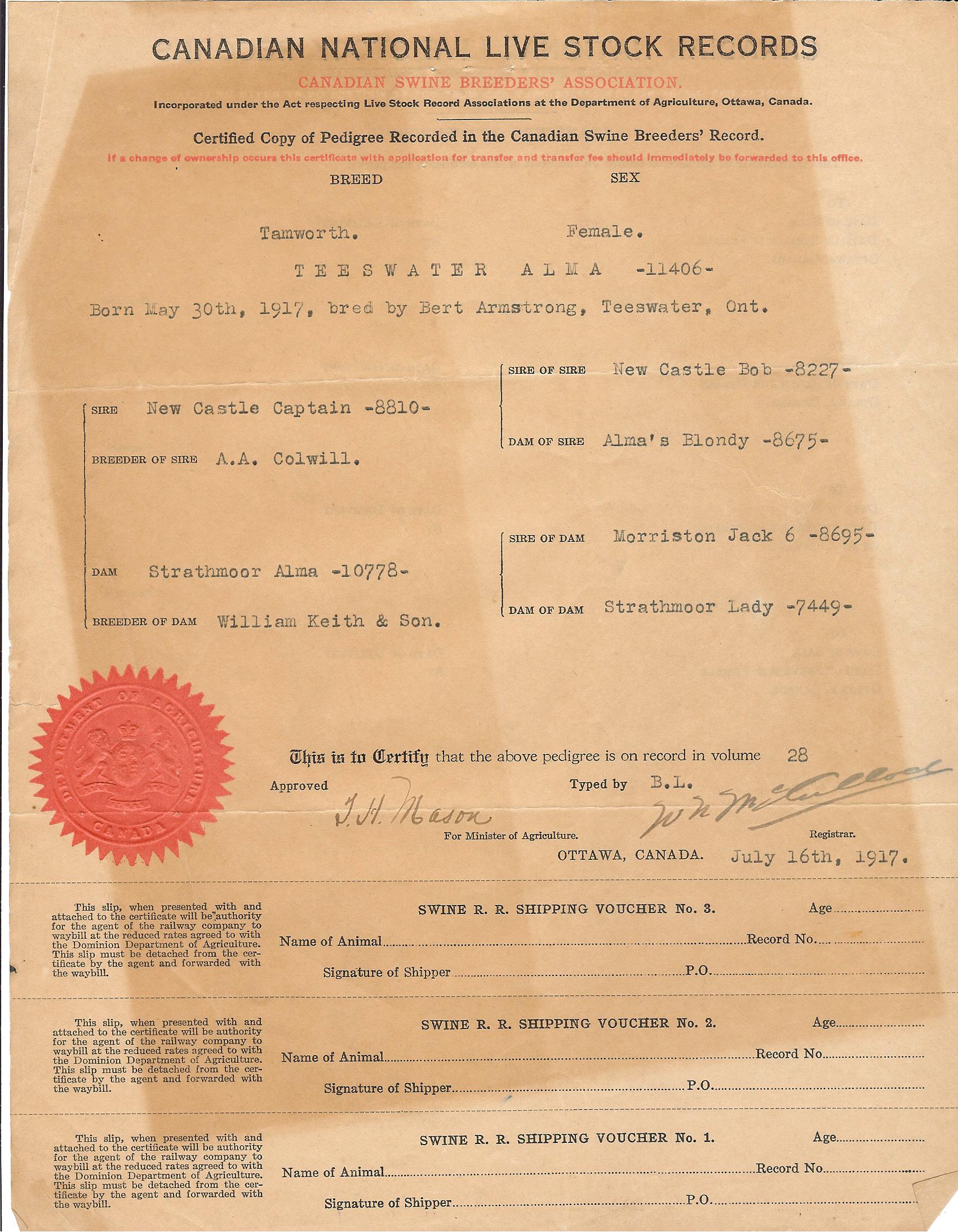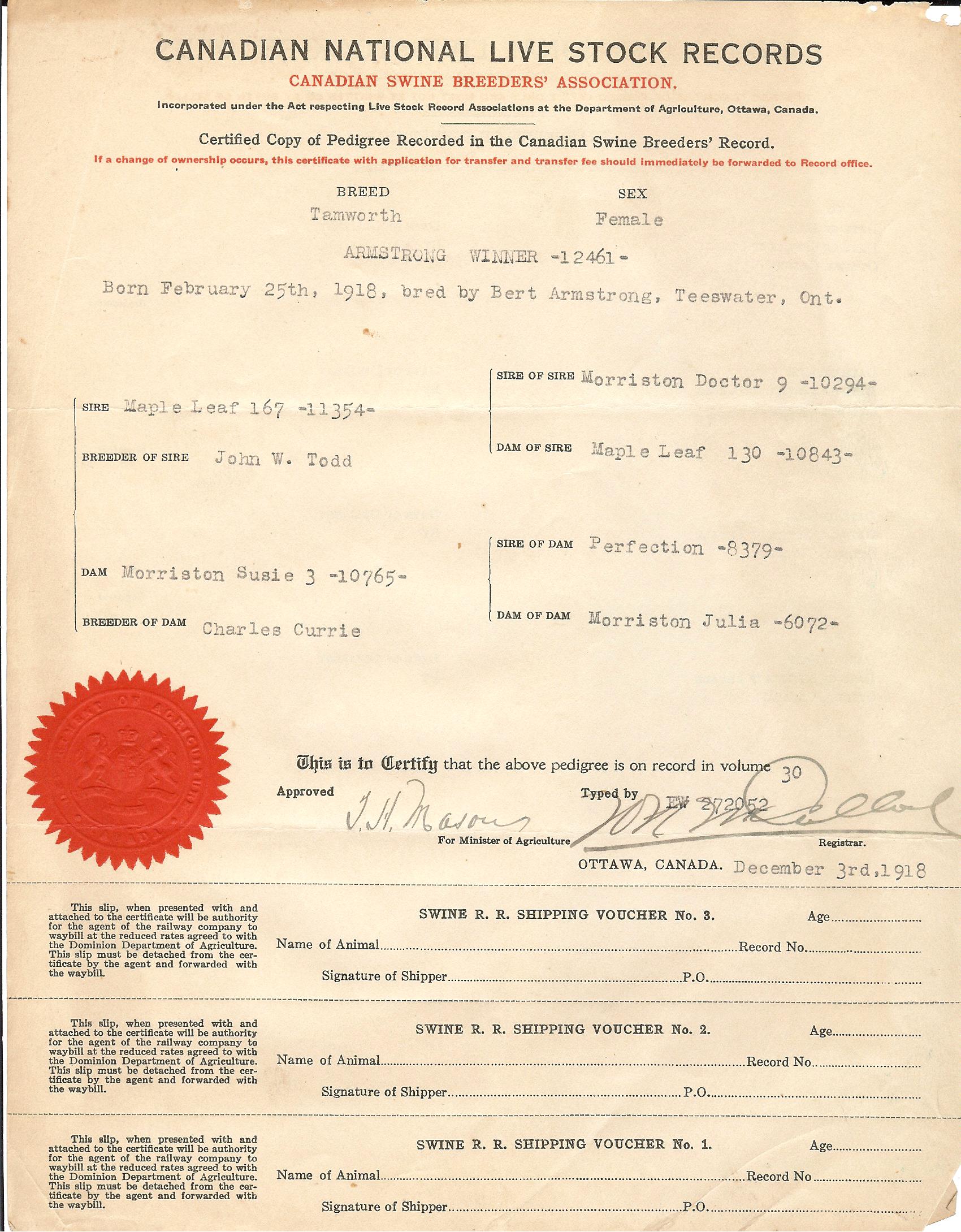Archives Topolnicky Documents 1937 - 1944 Pedigree Certificates 1911 November 1916 October 1917 March 1917 June 1917 July 1918 September 1918 November 1918 December 1919 July 1922 October