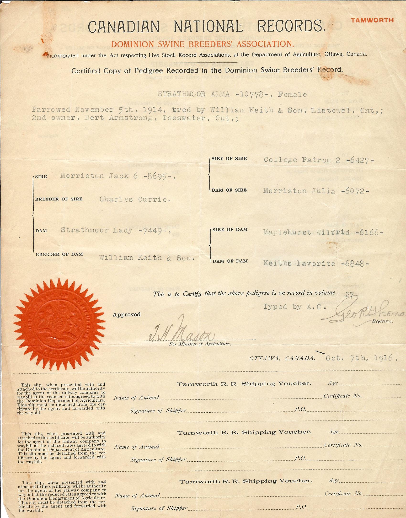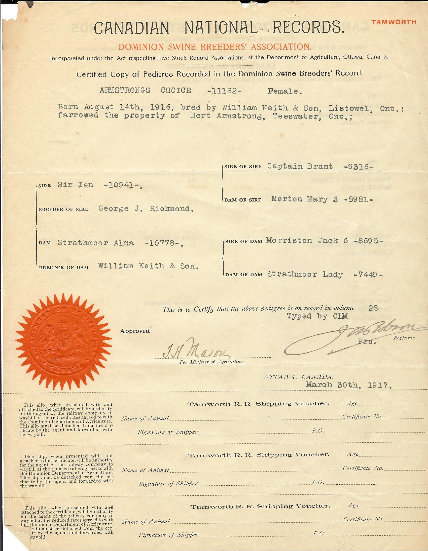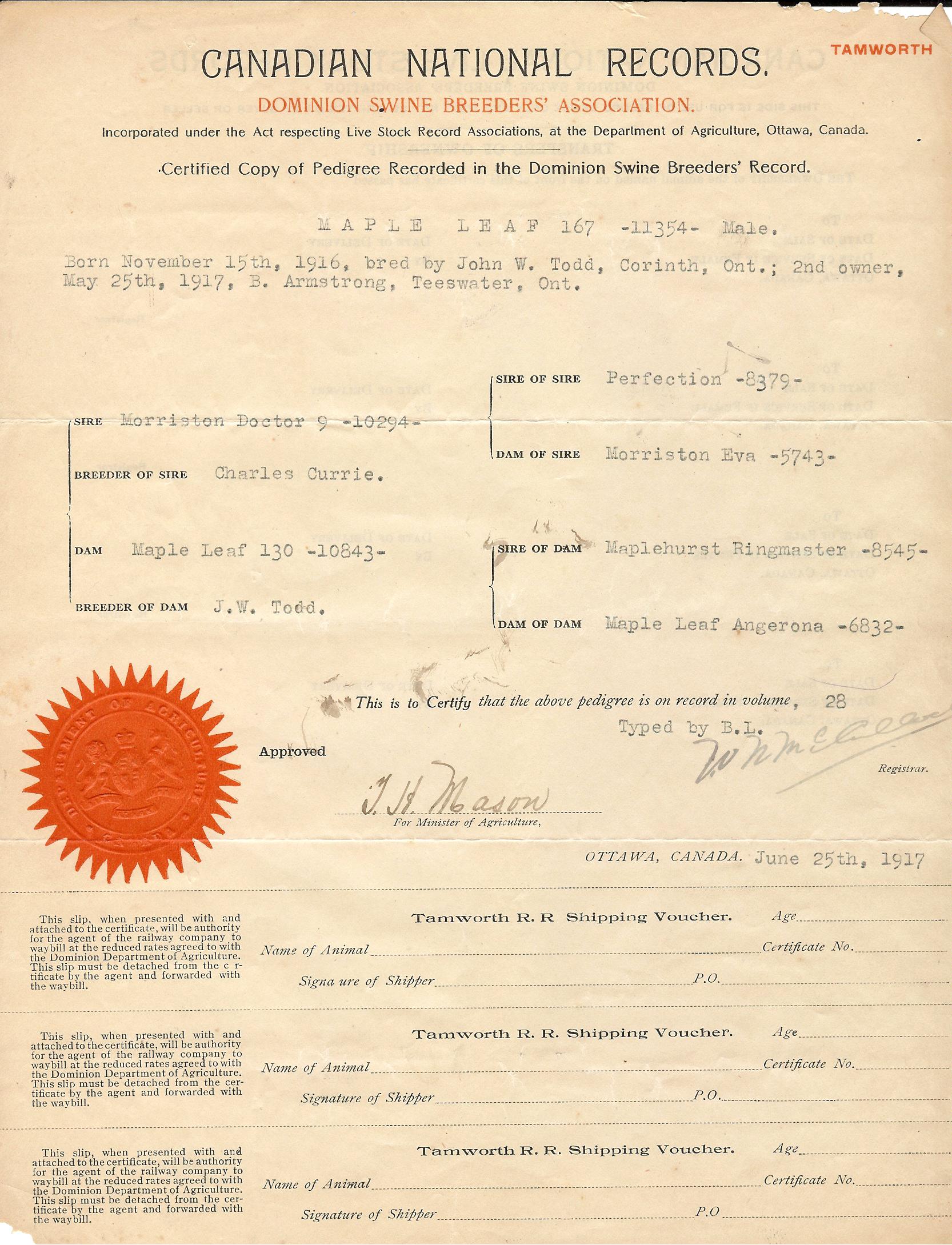 Archives Topolnicky Documents 1937 - 1944 Pedigree Certificates 1911 November 1916 October 1917 March 1917 June 1917 July 1918 September 1918 November 1918 December 1919 July 1922 October